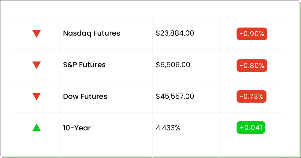 Futures are sliding as the Iran standoff gets louder again, with oil back in the driver’s seat and risk appetite taking another hit. Traders are also watching to see whether this week brings real economic cracks, because four straight losing weeks has everybody suddenly acting a lot less brave.